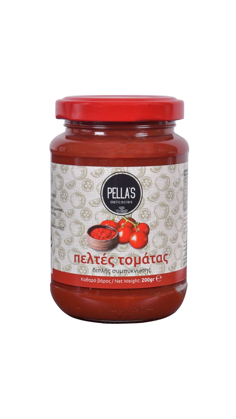 Ρίχνουμε τον πολτό ντομάτας, τα μπαχαρικά, τη ζάχαρη και λίγο νερό. Ανακατεύουμε καλά και αφήνουμε να πάρει μια βράση.